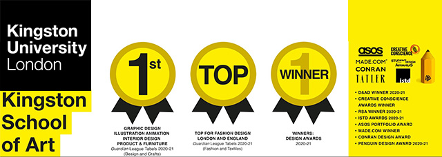 服裝設計 (Business of Fashion 2015-2019 保持全球前10 排名)The Business of Fashion 2019 評比: Kingston大學服裝設計在所有方面均獲最高分( 全球僅6 所, 全英僅2 所大學獲此殊榮)